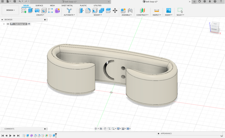After fiddling with size and bezier curves I landed on the final version. I printed a bunch gave them out to all of my friends that asked for belt loops back when they saw me wearing the initial prototype